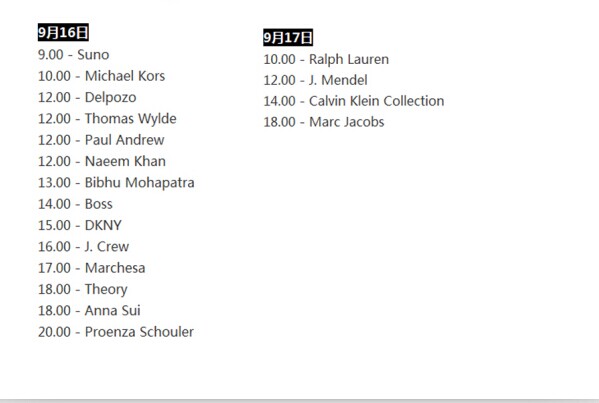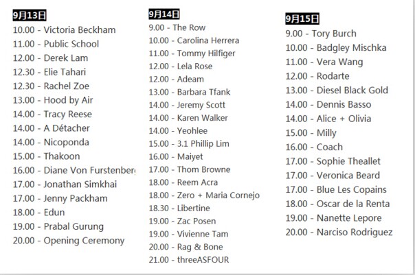 廣州皮具廠必看 2016春夏紐約時裝周日程表出爐